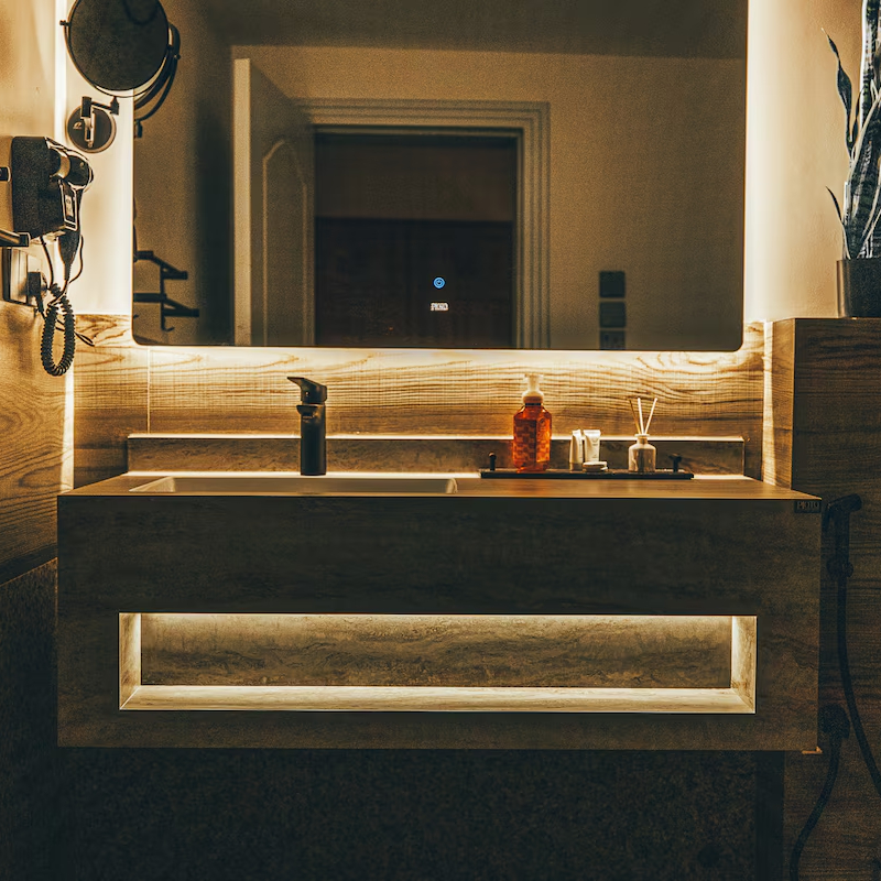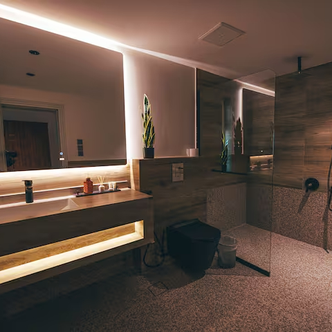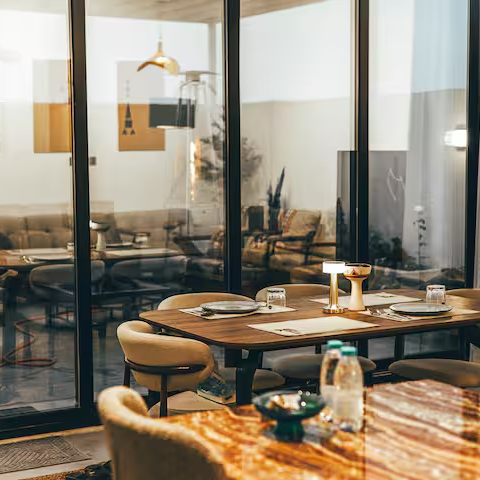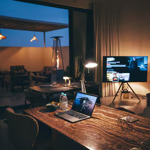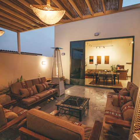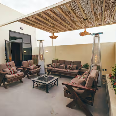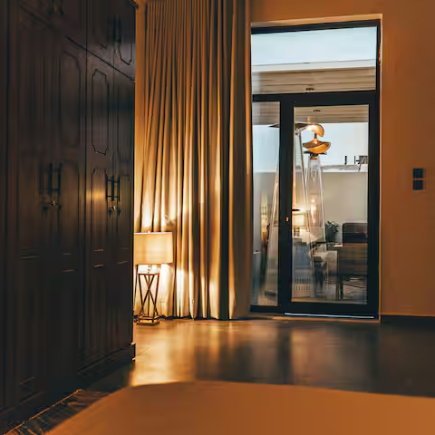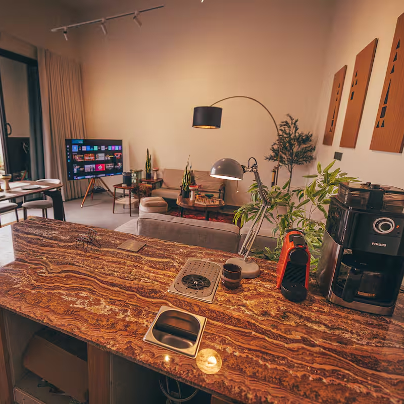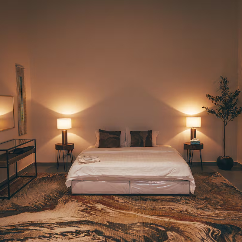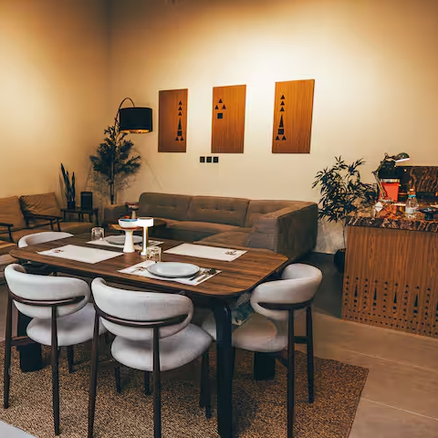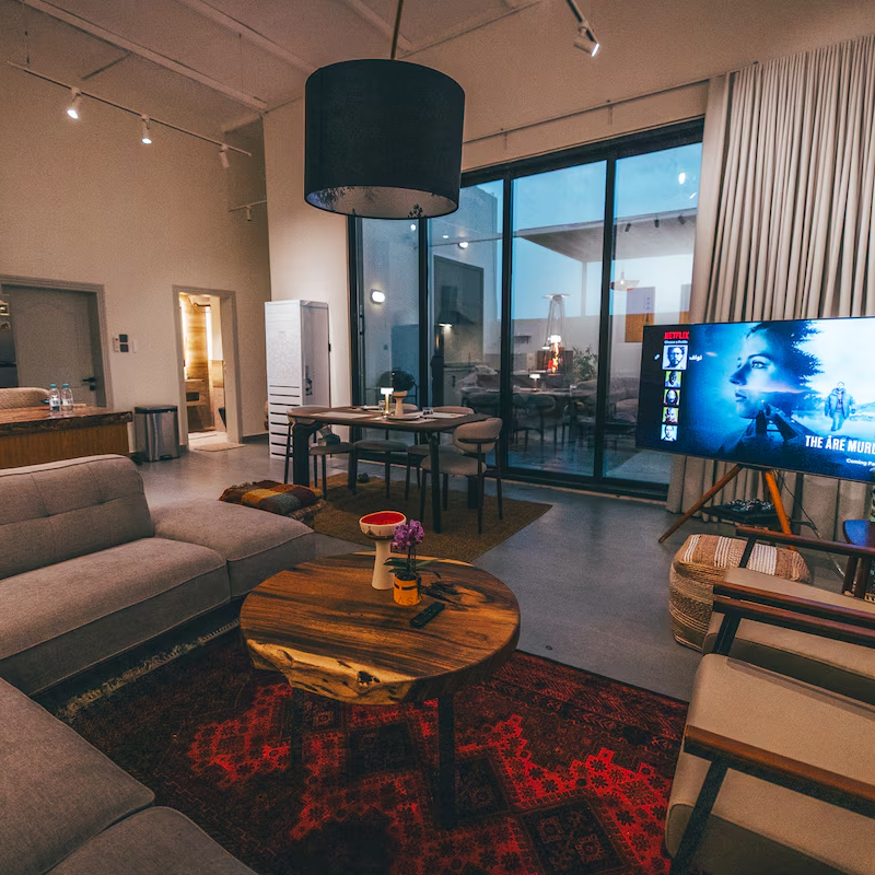 تقع هذه الشقة الفاخرة في قلب أحد أرقى أحياء الرياض، حيث تتناغم الأناقة العصرية والتكنولوجيا مع التصاميم الثقافية الأصيلة. تتميز الشقة بمساحاتها الواسعة التي تضفي شعوراً بالرحابة والراحة، وتتميز بتفاصيلها الدقيقة التي تعكس ذوقاً رفيعاً. جدرانها بأسقف عالية، تحوي حديقة وجلسة خارجية خلابة تبعث على الاسترخاء. تتميز الشقة أيضاً بإضاءة خافتة ودافئة تخلق أجواءً مريحة، وتحتوي على قطع أثاث فاخرة مصنوعة من أجود أنواع الرخام و الأخشاب.