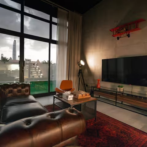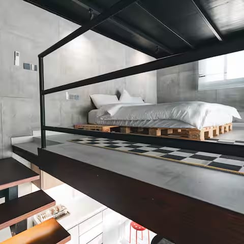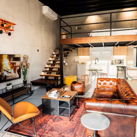 تتميز الشقة بنظام اللوفت العلوي المكون من دورين بتصميمها الأنيق والعصري الذي يعكس نمط نيويورك العصري. توفر الشقة إطلالة فريدة ومميزة على برج المملكة الشهير. بالإضافة إلى ذلك، تتوفر منطقة فناء خارجي تسمح لك بالاستمتاع بالطقس الجميل والاسترخاء بعد يوم طويل.